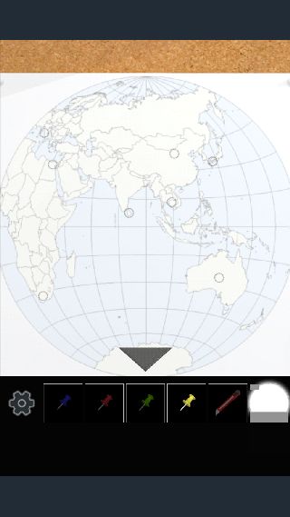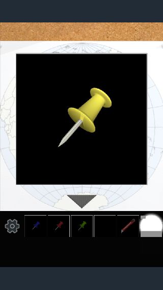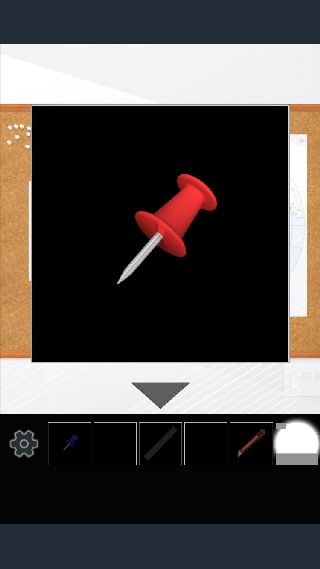 コルクボードを拡大して、左上から「赤い押しピン」を入手。