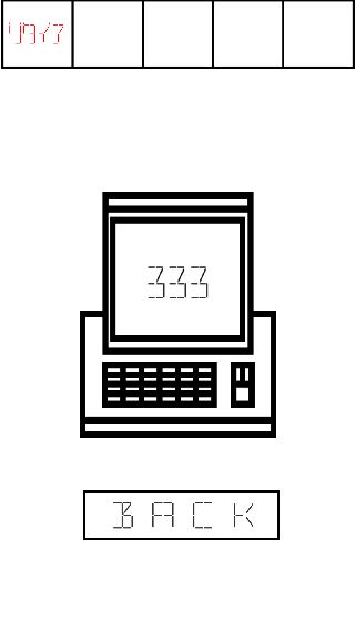 脱出ゲーム -部屋からの脱出- SHIRO_KURO 無料 0 評価する 送信する STAGE 4 パソコンを調べて、『333』を確認。 右に移動して、テレビを調べて『222』を確認。 ゴミ箱の中の『PC+TV』を確認。 扉の右のキーパッドを拡大。 『555』を入力して、扉を開ける。 STAGE 1 STAGE 2 STAGE 3 STAGE 4 STAGE 5 STAGE 6 STAGE 7 STAGE 8 STAGE 9 STAGE 10