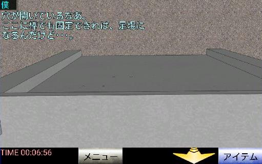 「ヤスリ」を入手して、右から下を調べて壁に穴があるのを確認。