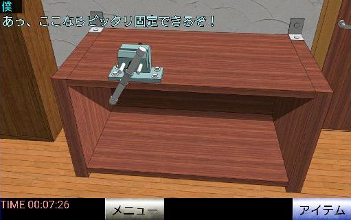 窓を拡大して、パイプに「ヤスリ」を使って「鉄棒」を入手。
