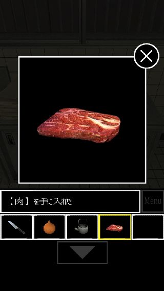 豚の貯金箱に「ハンマー」を使って、「肉」を入手。