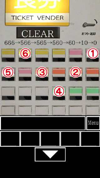 上のヒントを元に、『100円、1円、5円、500円、50円、10円』の位置のボタンを順に押す。