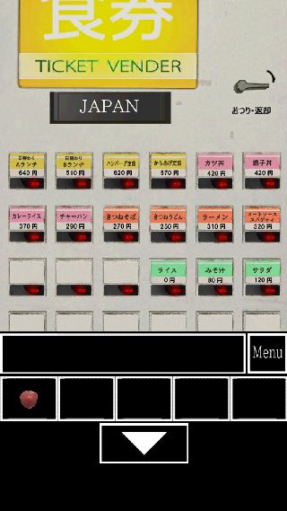 券売機の『ライス0円』のボタンを押して、表示が『JAPAN』となるのを確認。