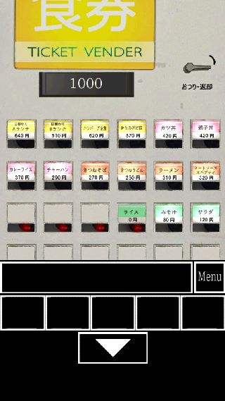 トータルで『1000円』になるように、『カレーライス、ラーメン、ミートソーススパゲティ』のボタンを押す。