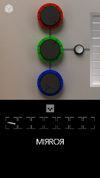 反対側に移動して、壁の3つのダイヤルを拡大。