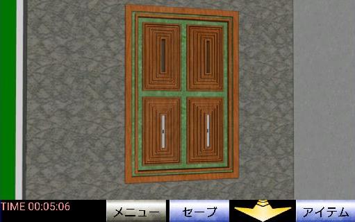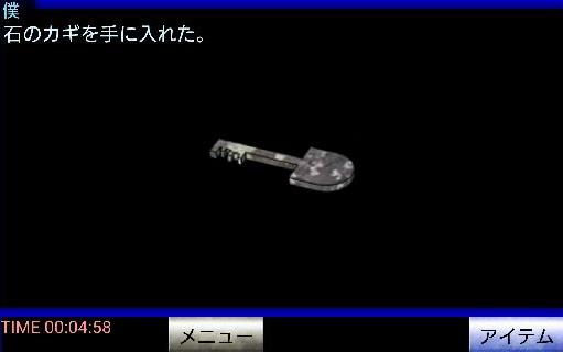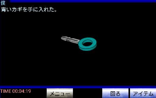 左に移動して、上の開いた扉の中から「青いカギ」を入手。
