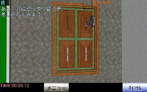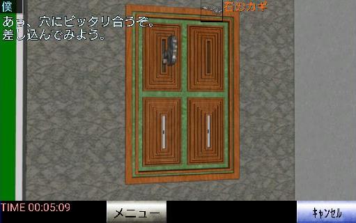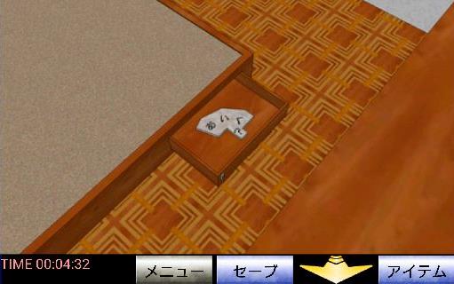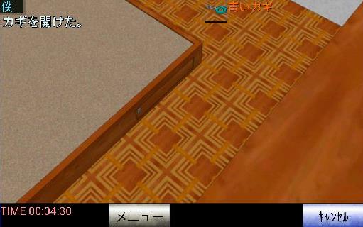 左の机の下を調べて、鍵穴に「青いカギ」を使う。