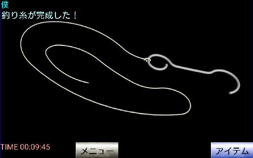 「クリップ」を曲げて、「テグス」を取り付けて「釣り糸」を入手。