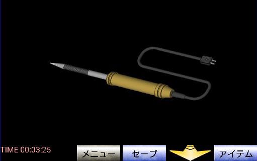 床を調べて、「槍」を使って「はんだごてのコード」を入手。