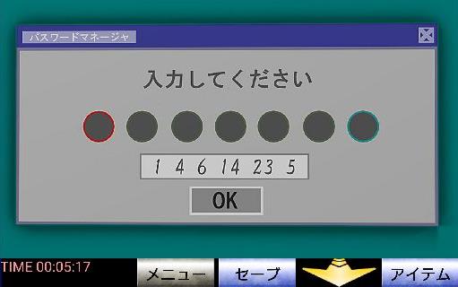 パスワード入力画面の『1、4、6、14、23、5』を確認。