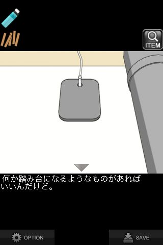ヒモでぶら下がっている物を何度か調べて『何か踏み台に~』のメッセージを出す。