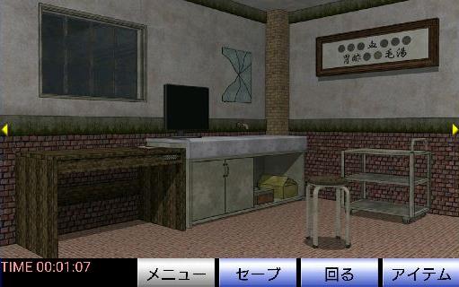 鉄格子の下を調べて、奥の棚にあるカギを確認。
