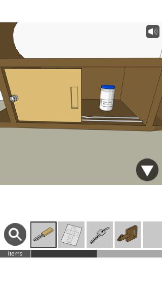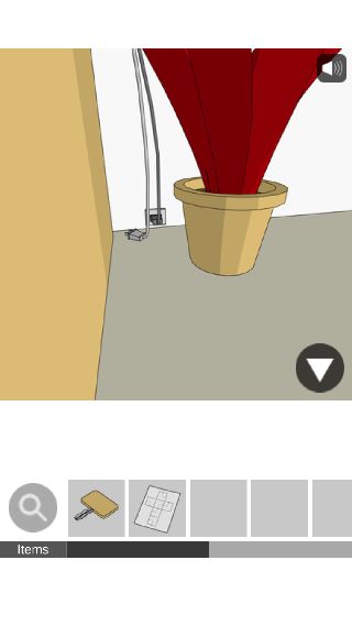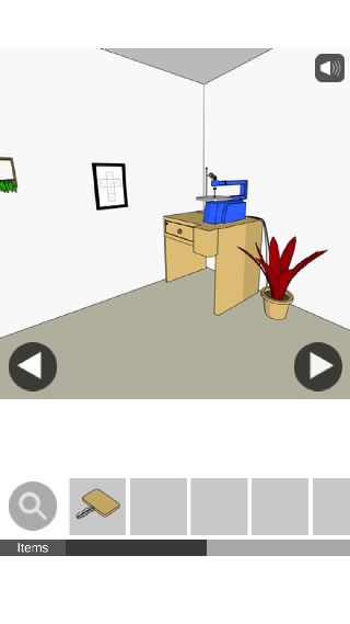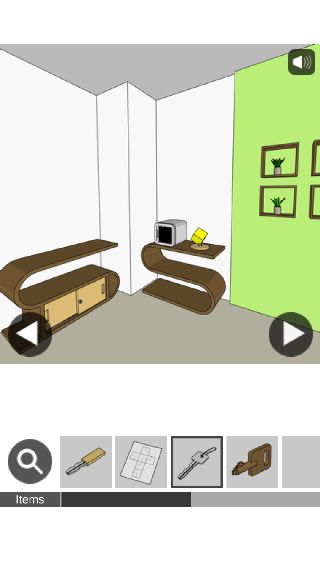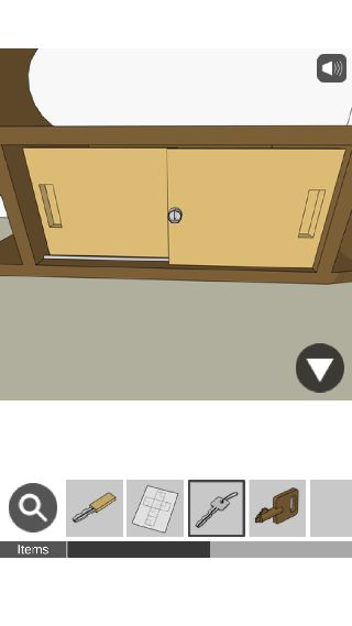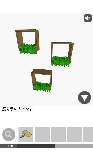 下の棚から「木の鍵」を入手して、右に移動。