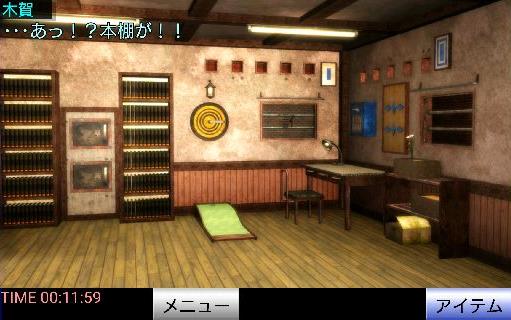 本棚を棚の中のヒントを元に、『右4段目を2回、左2段目を1回、右3段目を3回』タップする。