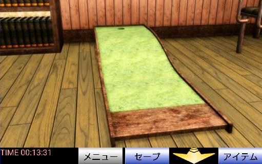 下のパット練習台のカップに「ゴルフボール」を入れる。