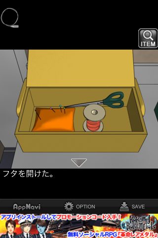 左の棚の裁縫箱を拡大。