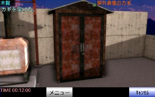 中央上あたりをタップして、「屋外倉庫のカギ」を入手。