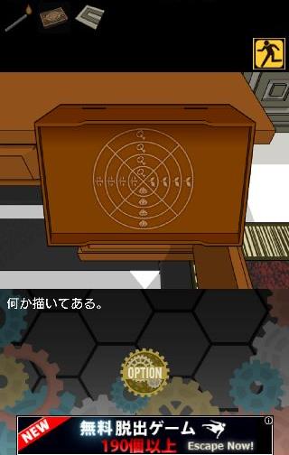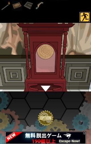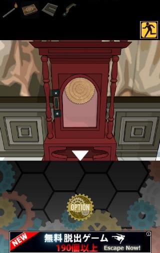 箱の裏の図形の並びを確認して、左奥の柱時計の前へ。