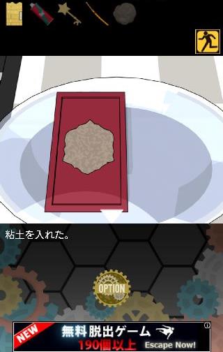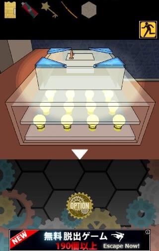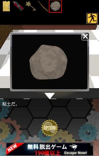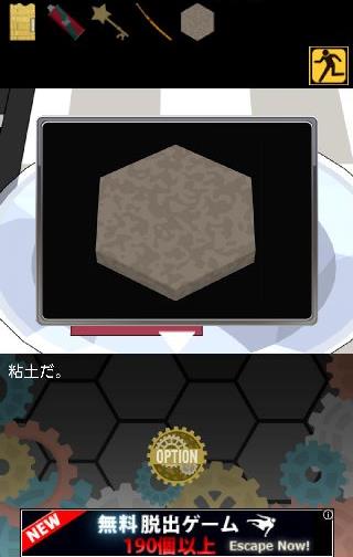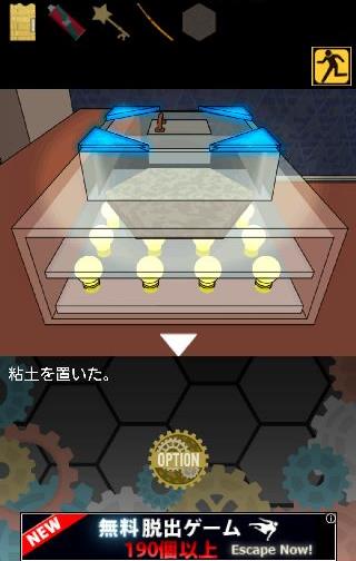カウンターの上のケースを拡大して、上のケースと電球の間に「粘土」を置く。