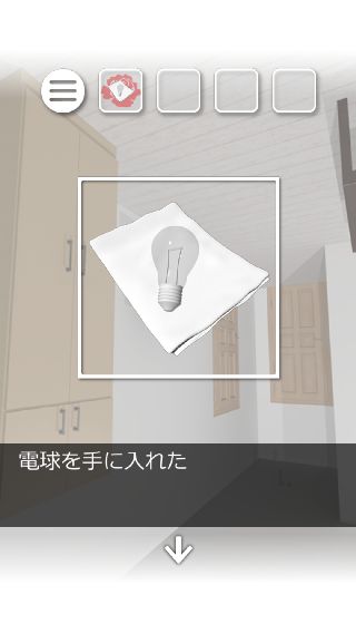 床(天井)のライトの蓋を拡大して、「タオル」を使って「電球」を入手。