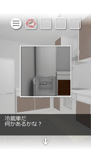 冷蔵庫の下の扉を開けて、『△□○×』を確認。