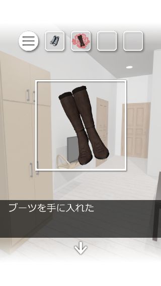 左から「ブーツ」、「サンダル」、「靴」の順で置いて、「鍵」を入手。