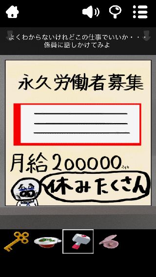 この状態で「カギ」で扉を開けて脱出すると、バッドエンド『永遠の労働者』へ。