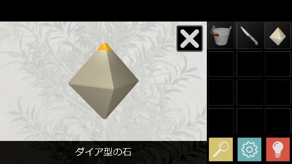 「果実」に「ナイフ」を使って、「ダイア型の石」を入手。