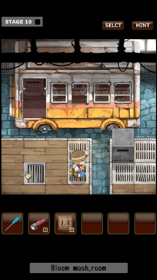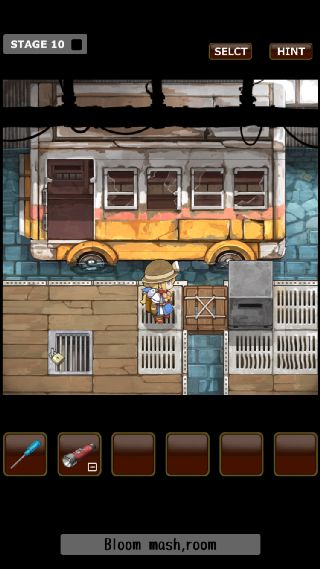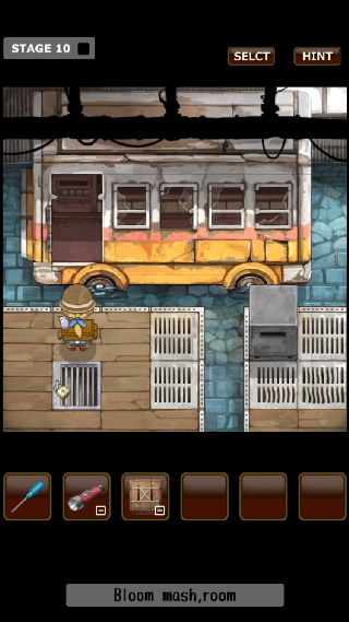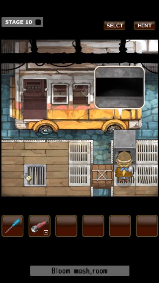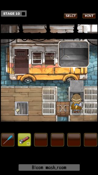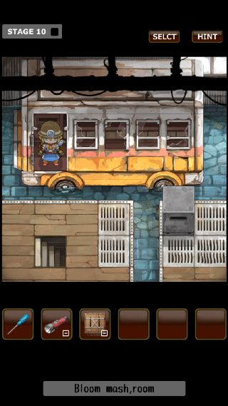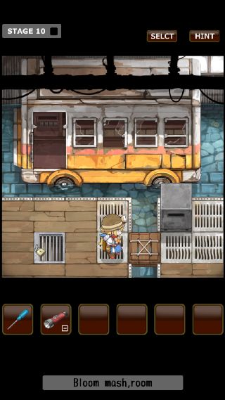 左上に「はしご」をかけて、バスの中から「懐中電灯」を入手。
