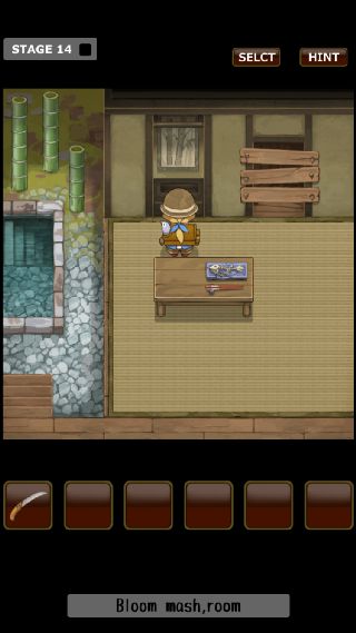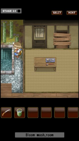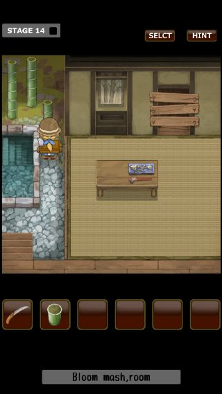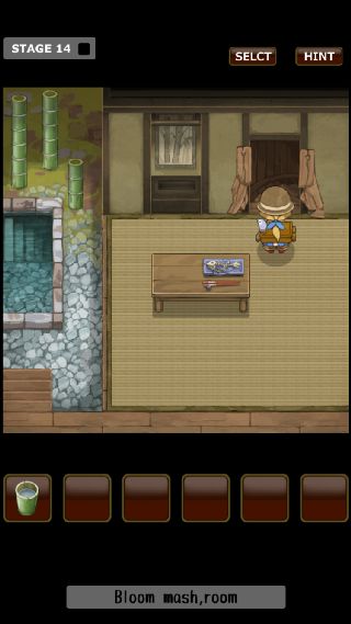 左上に移動して、「ナイフ」を使って「竹のコップ」を入手。
