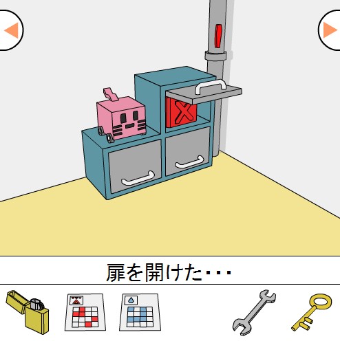 右上の扉に「カギ」を使って開ける。