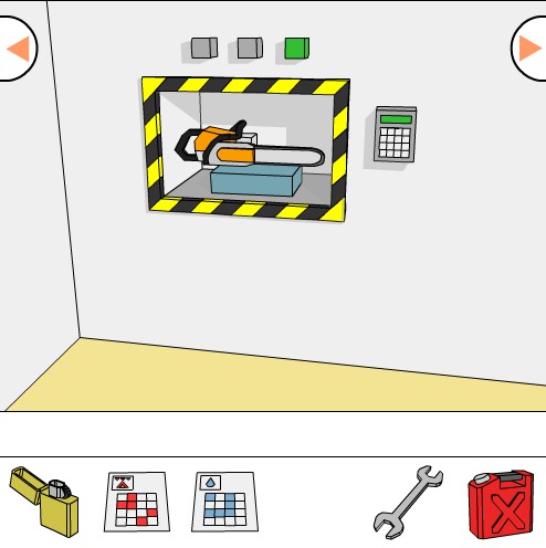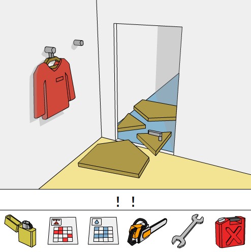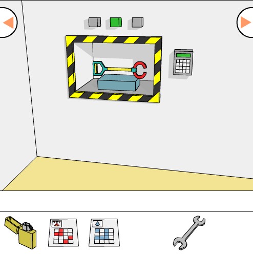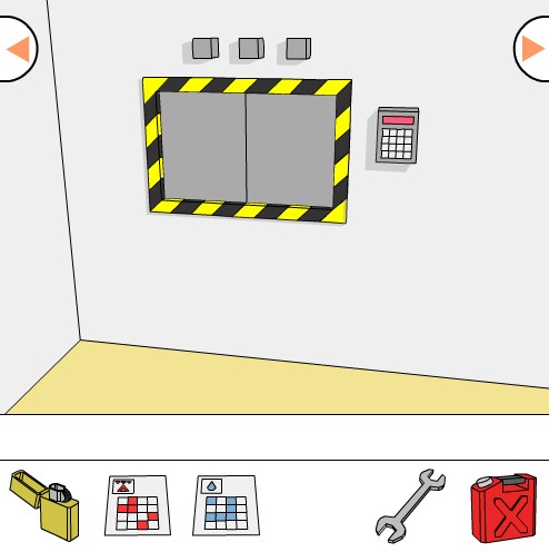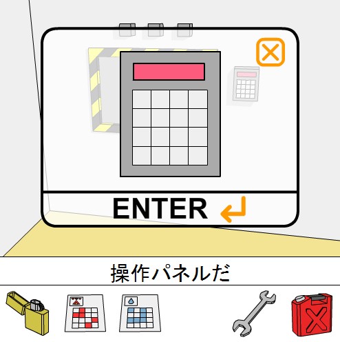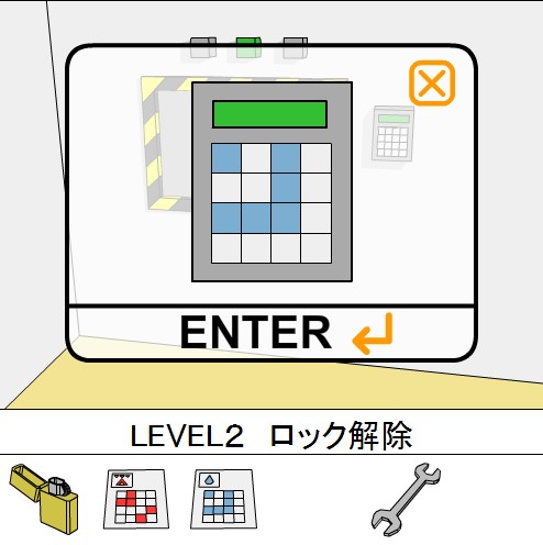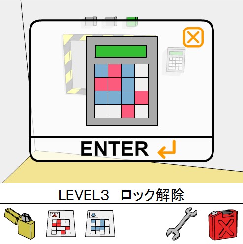 「青い模様のカード」をヒントに、ボタンの色を合わせてシャッターを開ける。