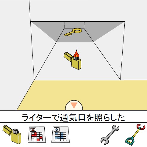 通気口を覗き込んで、「ライター」を使う。