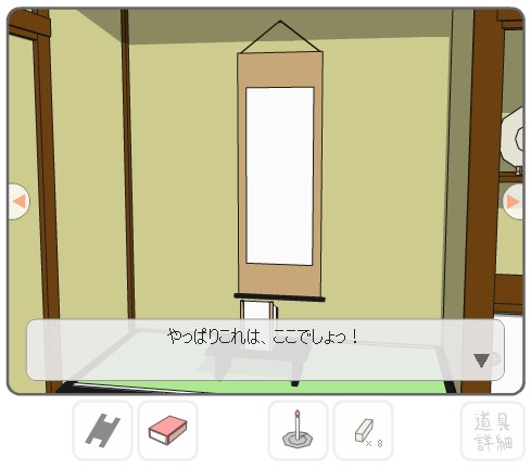 左に2回移動して、壁に「掛け軸」を掛ける。