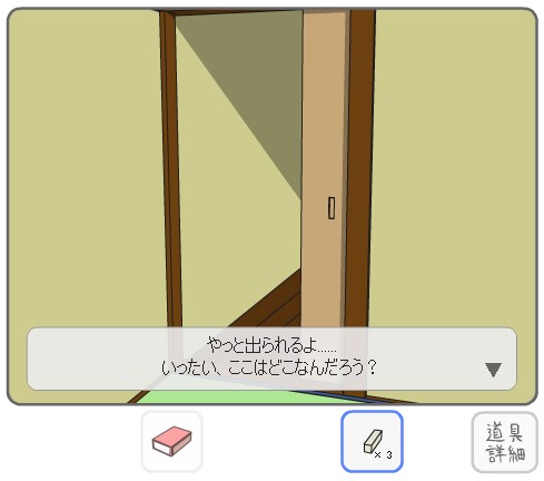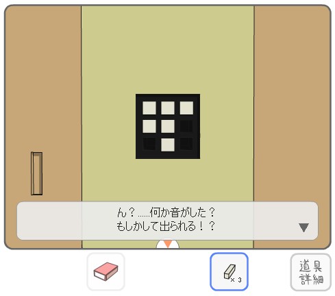 先ほど確認した配置で「棒」を差し込んで、扉を開けて脱出。