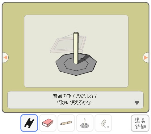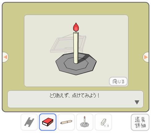「ロウソク」を入手して、「マッチ」で火をつける。