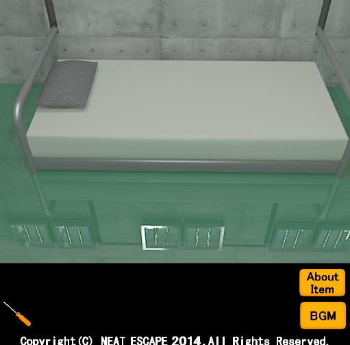 窓の金色のパイプをヒントに『右右左左右右』の順で押して、スイッチを押すとベッドが動く。