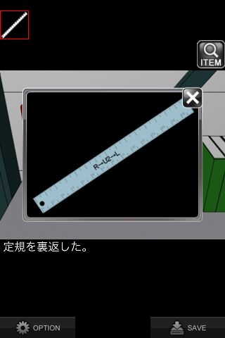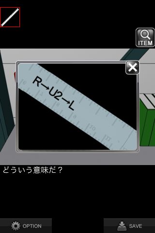 「定規」を裏返して、暗号を確認。『R=右』『U=上』『L=左』を表しており、『右上上左』となる。