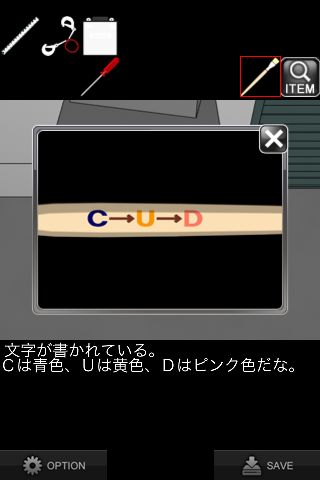 中のノートを調べる。「筆」に書かれているとおり『U=アップ』の箱なので『黄色=5』を確認。