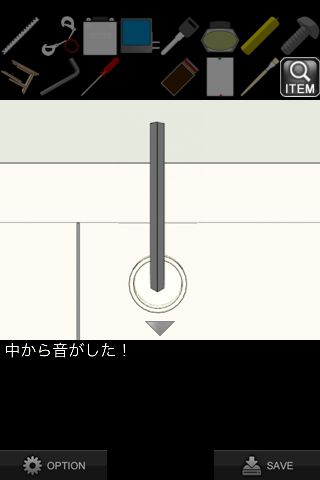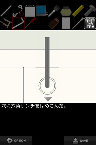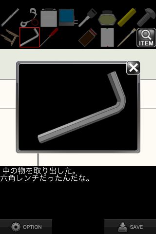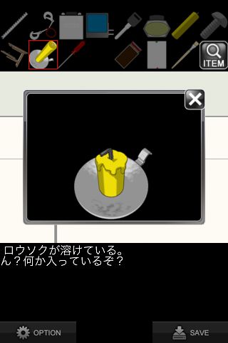 「ロウソク」を調べると、ロウが溶けて「六角レンチ」を入手。