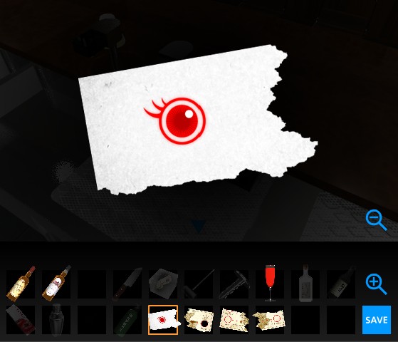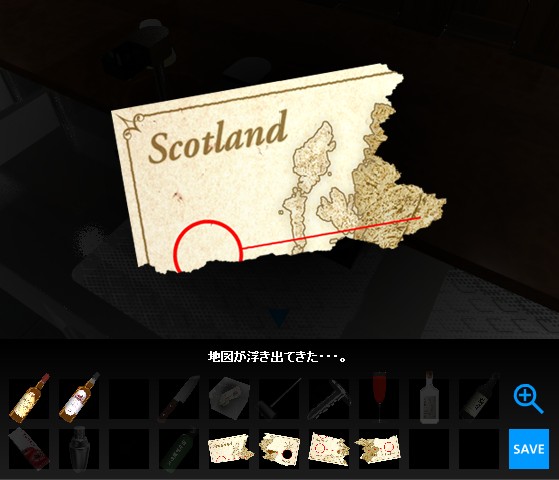 「紙切れ」に「レッドアイ」をかけて、「地図の一部」を入手。