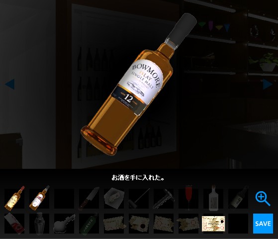 右側を開けて、「お酒(ボウモア12年)」を入手。