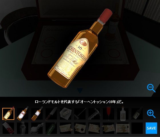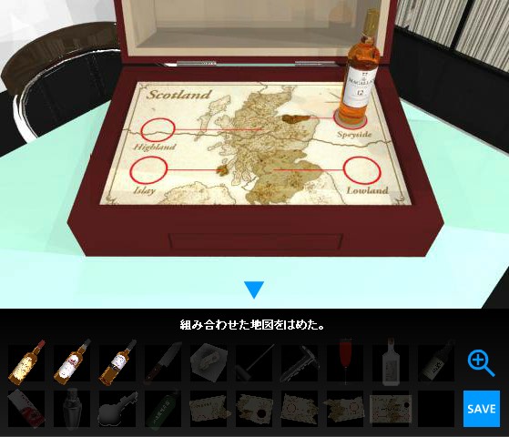 「お酒(オーヘントッシャン10年)」を、説明文をヒントに右下のローランド部分に置く。