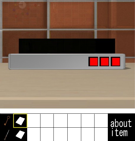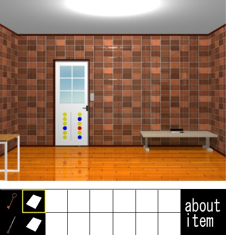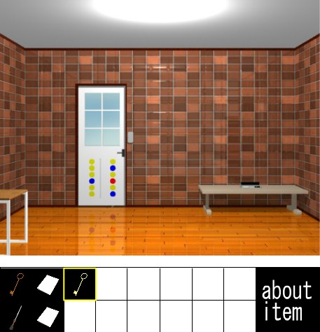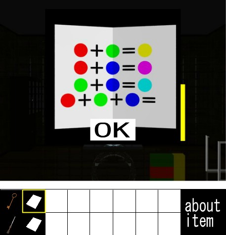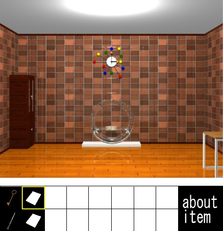 右に移動して、壁の時計の該当する色『1時=黄、9時=赤、6時=緑』を確認。