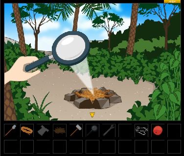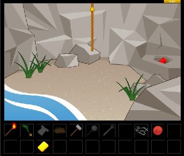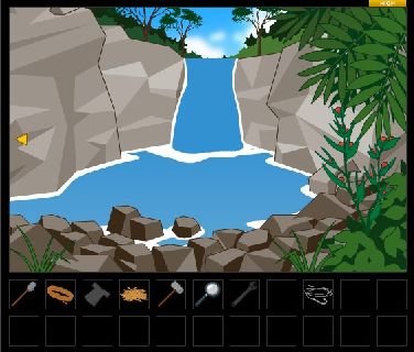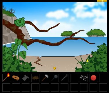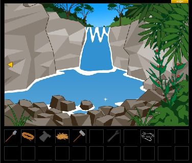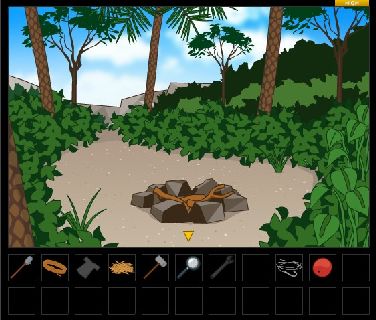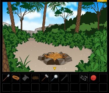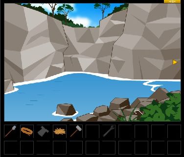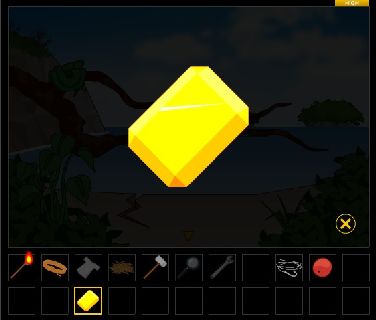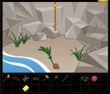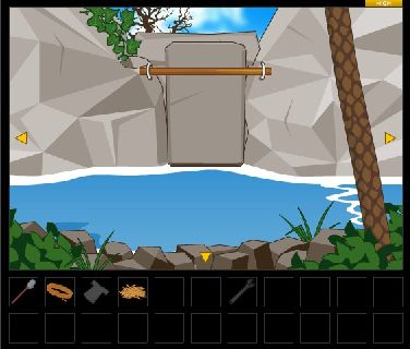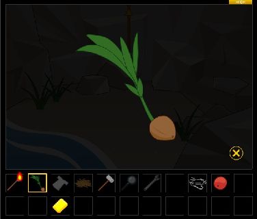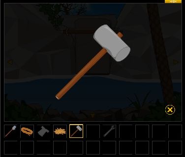 「ヤシの実」を入手して、右の岩に「ハンマー」を使う。
