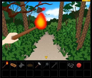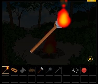 「虫眼鏡」で火をつけて、「松明」に火をつける。