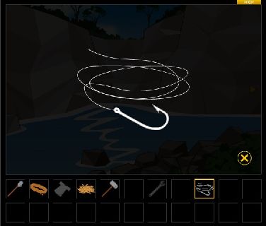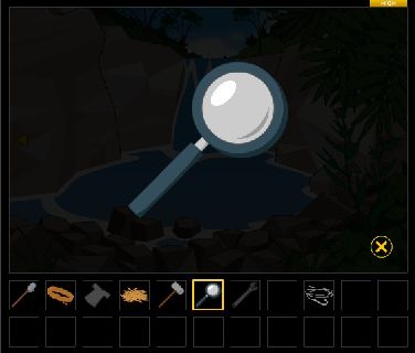 右に2回移動して、水面の光っている場所から「虫眼鏡」を入手。