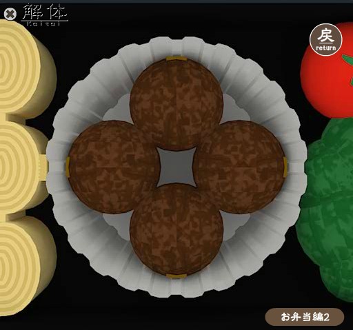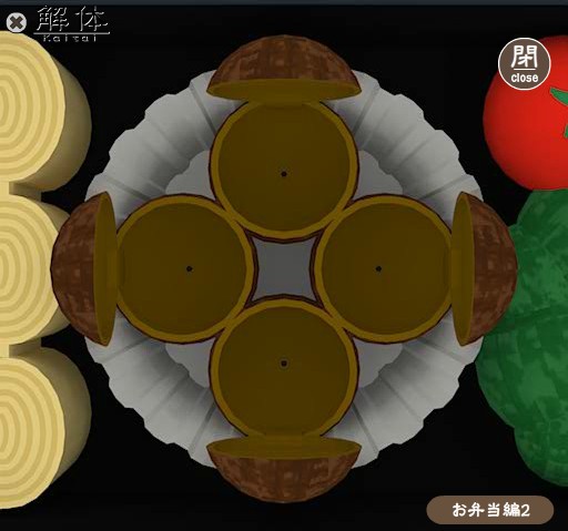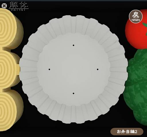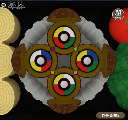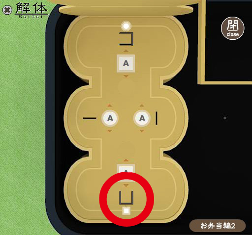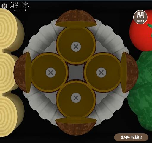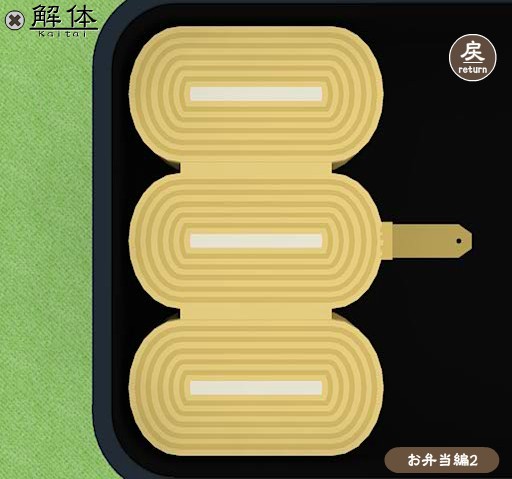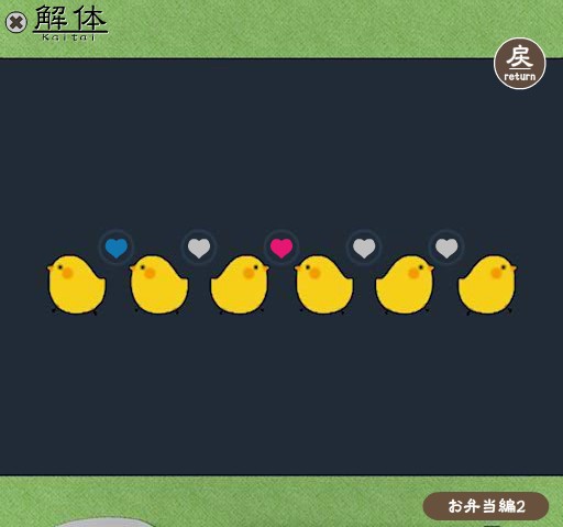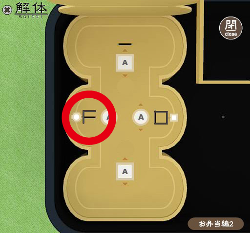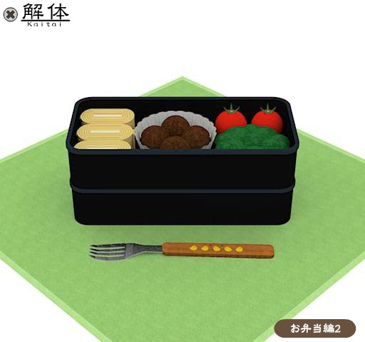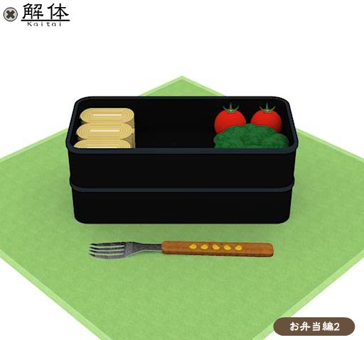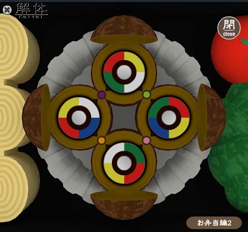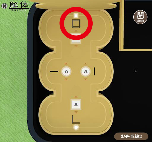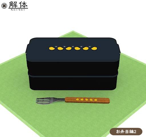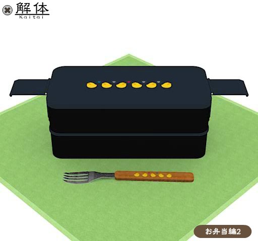 弁当箱のフタを拡大して、一番左を『青』、左から3番目を『赤』にする。