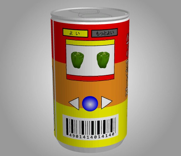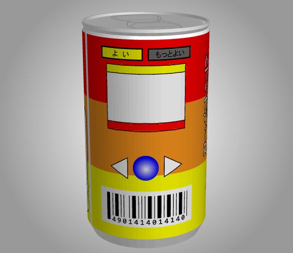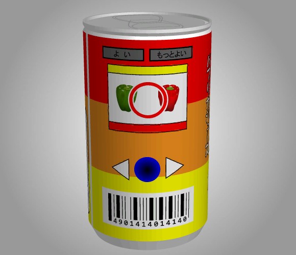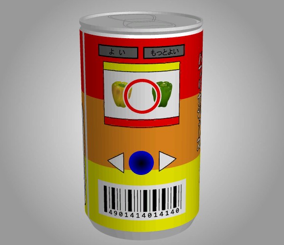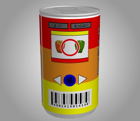 缶の右側で▽の向きとその間の色『右、赤赤黄黄赤、左』を確認。