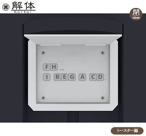 アルファベット順に『A~I』を押して、4隅のネジを外す。